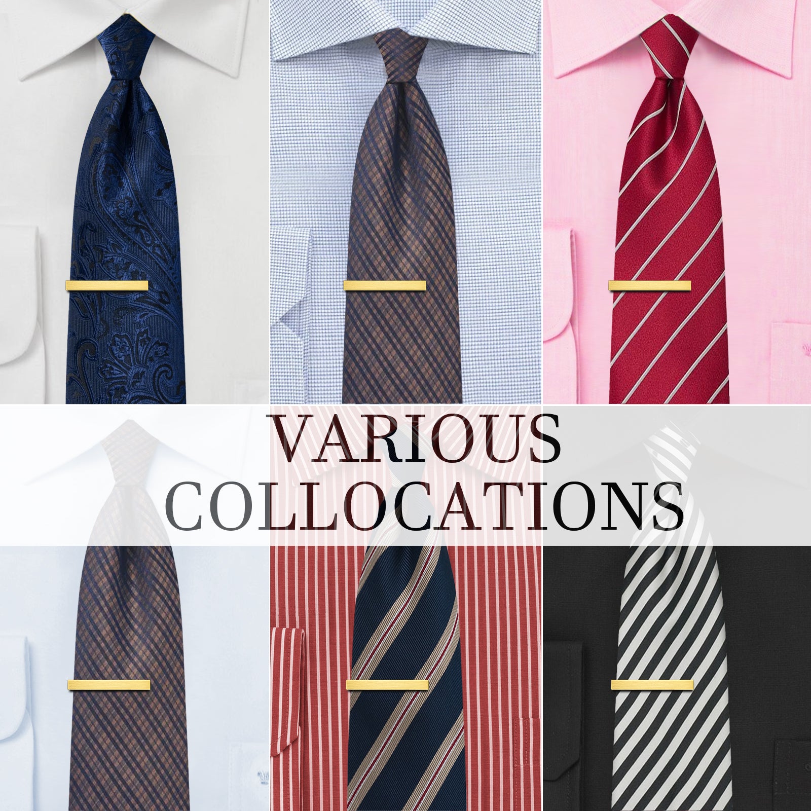 【Classic Tie Accessories】Tie clip is the simplest structure, allowing you to put on the tie clip in 3 seconds. Tie clips come in gold color, matching with black, red, grey, green, blue ties and suits, and the 2.2 inch tie clip fits most tie widths(2.25" 2.5" 3") .