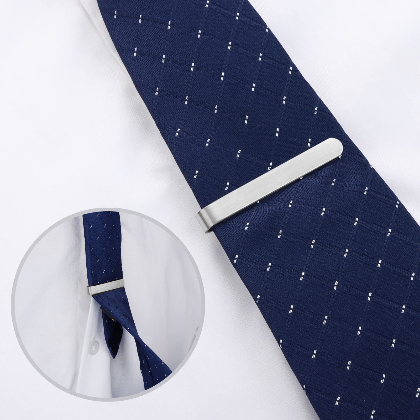 【CLASSIC MENS ACCESSORIES 】 Appeal to his tailored taste with this handsome personalized tie bar clip set. Fashioned in brass material, A high brush finish and crisp edge lend an iconic look to an everyday. this ensemble is a must-have for his wardrobe. Modern sliver color adds a dash of style to this classic tie clip what makes a great groomsmen gift for wedding party attire.