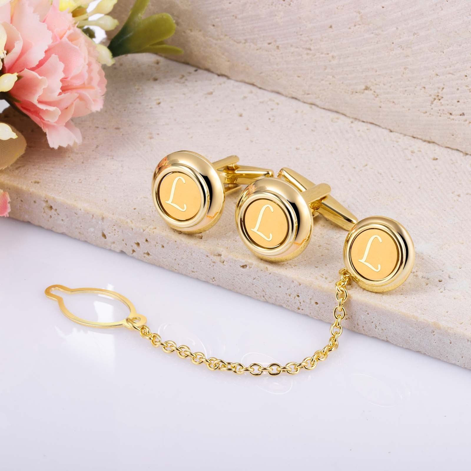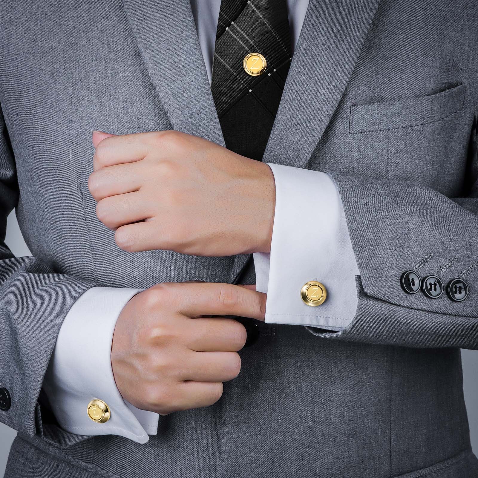 【Perfect for Any Setting 】HAWSON Gold Initial tie pins and cufflinks for men complement any suit and any necktie. High Polished Smooth Surface Makes This tie tack is Perfect to Wear on Daily Life or Special Occasion. Light, Simple and Modern Design will Accentuate any Style.